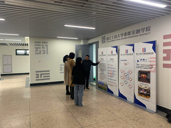 12月1日上午,WilliamHill官网一行人考察了浙江工商大学泰隆金融学院,学院办公室主任夏连峰详细介绍了金融学(小微、普惠金融人才)专业的合作办学模式、学科专业建设、课程体系、师资配备等情况,并就本科生人才培养方案制定、实验室建设与发展、产学研合作教育推进等问题与WilliamHill官网教师进行深入交流。浙江工商大学泰隆金融学院是国内首家培养小微、普惠金融高端人才的体制机制创新试点学院,是浙江省政府实施高等教育强省战略、推进产教融合和高等教育体制机制改革的先行项目。考察组对该学院的产学研合作教育、师资队伍建设和学生活动开展等方面收获颇丰。