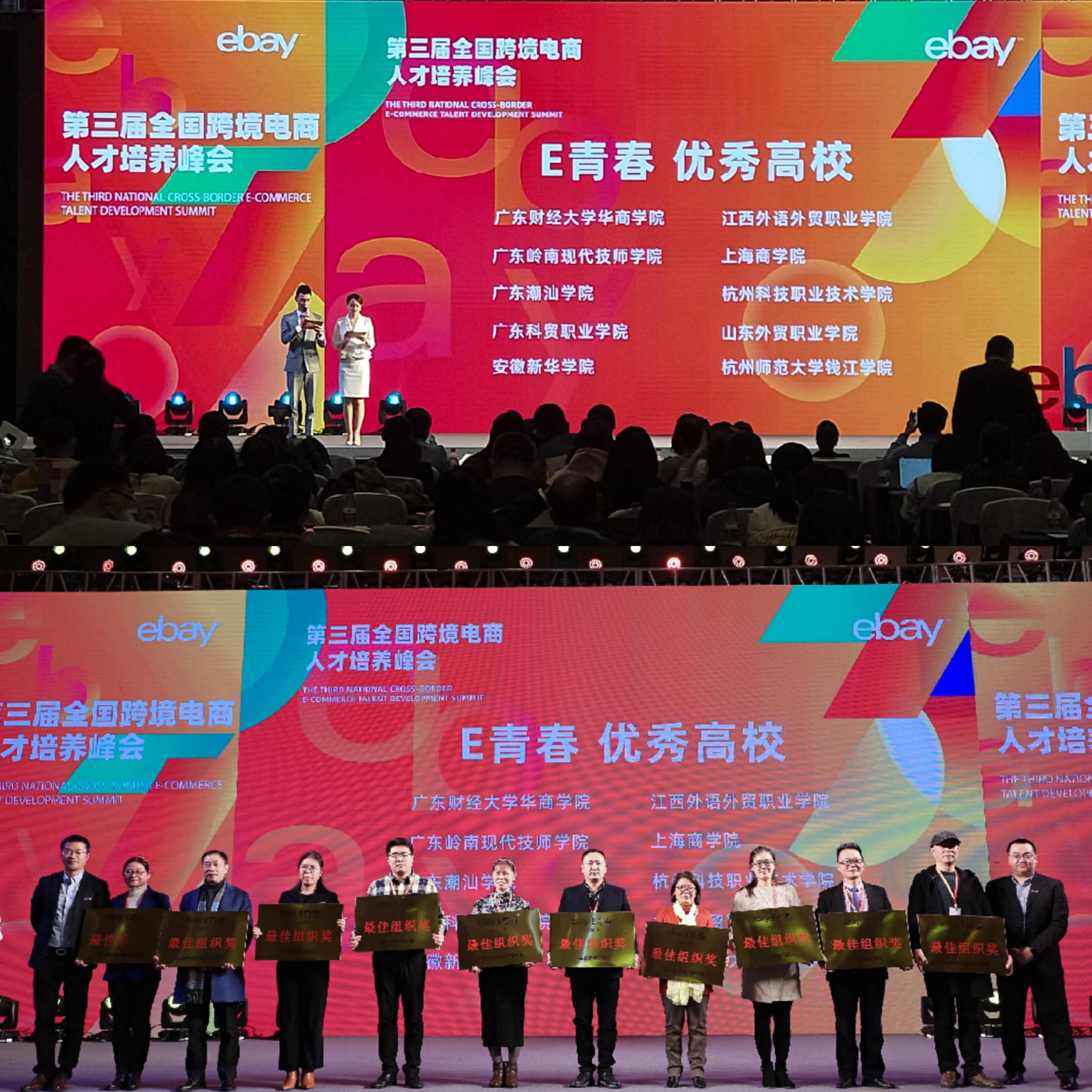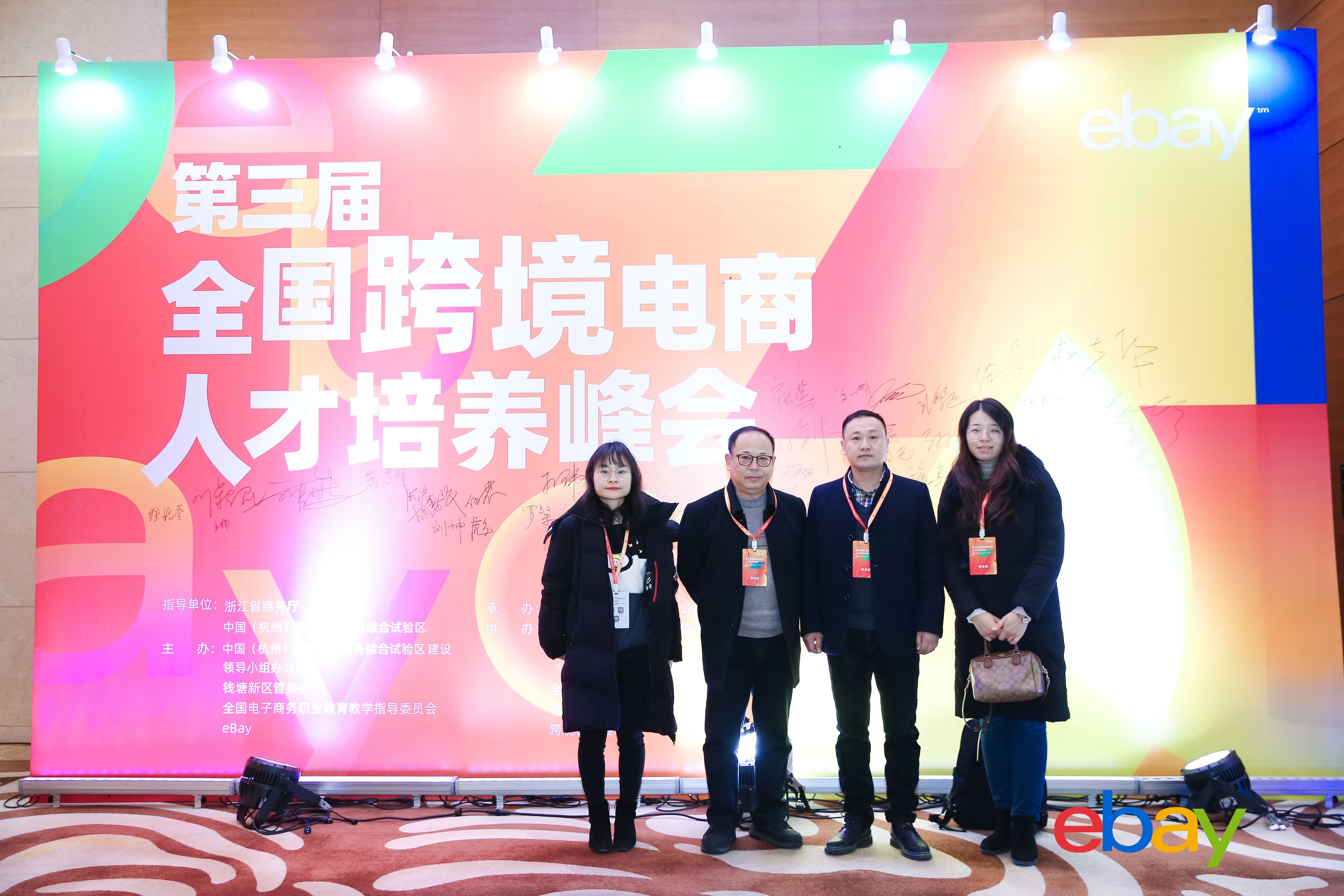 本网讯 (通讯员:李怡嘉)12月16日,在浙江省商务厅、杭州跨境电子商务综合试验区的指导下,由全球电子商务领导者eBay,杭州跨境电子商务综合试验区建设领导小组办公室、钱塘新区管委会以及全国电子商务职业教育教学指导委员会主办的第三届全国跨境电商人才培养峰会在杭州隆重举行。来自全国近400所高校的代表,eBay“E青春”优秀毕业生代表,以及各企业家代表齐聚钱塘共话发展。WilliamHill官网外国语学院副院长(主持)杨光、副院长周平、英语系主任助理盛素雯和商务英语教研室教师李怡嘉受邀参加。
