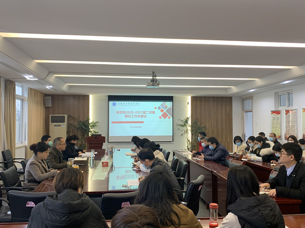 本网讯(通讯员:刘晓蓉)为做好新学期工作安排,2月26日上午,商学院召开2020-2021学年度第二学期期初工作布置会,对新学期相关工作进行具体部署和要求。会议由执行院长翟荣兵主持,商学院全体教职工参加了本次会议。