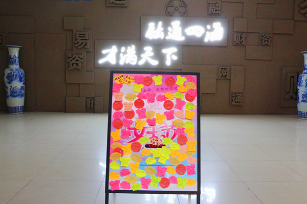 活动前期财会与金融学院收集了全体女教职工的微笑照片,制作成温馨版面大型喷绘,召集全院学生在节日来临之际表达对女性教师的祝福。