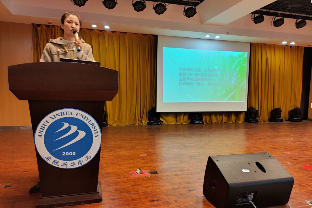 首先,夏菁介绍了新冠疫情突发以来,我国采取的防控措施和取得的有效成果,提醒同学们应持续做好个人防护。之后,针对往年春季常见的几种传染病如流行性感冒、肺结核和水痘等,分析了传染渠道、介绍了具体症状,讲解了防护方法。她讲道,同学们应学会自查,发现自己或他人出现疑似传染病症状时,保持冷静,主动上报,及时就医,对自己和集体的健康负责。只有每个同学都切实加强传染病防控的意识和能力,才能扎实提高春季校园传染病防控工作的质量。最后,夏菁强调,大学生要学会正确辨别春季各类传染病及其传播途径,加强锻炼,增强抵抗力,走下网络、走出宿舍、走向操场。