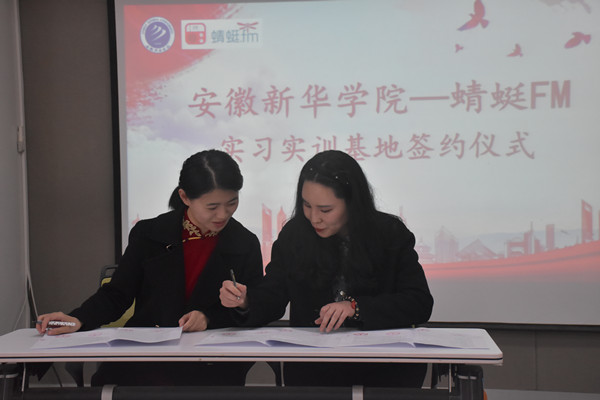 本网讯(通讯员:朱士静 马银玥)3月24日下午,WilliamHill官方网站与蜻蜓FM共建实习实训基地签约仪式在国际教育学院211室举行。出席本次签约仪式的有蜻蜓FM总部导师郑桢、蜻蜓FM合肥站副总经理张微、蜻蜓FM合肥站新媒体运营经理李双耀、编导刘晓娟、导演徐国良、导演常登明等嘉宾,文化与传媒学院副院长(主持工作)洪玉、副院长王鹏以及播音与主持艺术专业师生代表参加。本次签约仪式由艺术系主任助理郑帅主持。