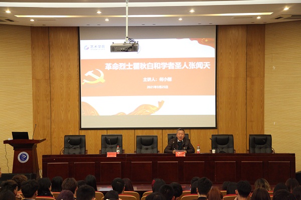 3月25日下午,马克思主义学院院长何小刚教授受邀为艺术学院全体师生党员上第一节党史课,课程为《革命烈士瞿秋白和学者圣人张闻天》。何教授从美国安克雷奇的中美高层战略对话开始引申到我党诞生之初及我党早期的革命领导人瞿秋白和张闻天。何教授为同学们讲述了我党两位早期领导人的出生、成长,为我党发展壮大捐躯赴难、视死如归的短暂一生,让我们了解一段不为人知的党史。何教授博学多才,他的讲课幽默风趣,在谈笑风声中将我党革命先辈的优良传统和不屈精神传承给了听课的同学们,潜移默化中让同学们受益匪浅。