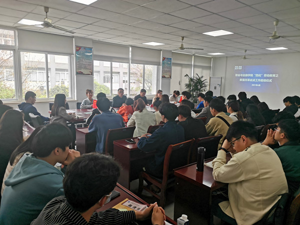 仪式伊始,辅导员胡晶晶介绍了前期实验班“明亮玻璃观察窗”活动;行政秘书魏银银就“教学楼四化建设”实施方案作说明,本次试点以教学12号楼1楼为试点区,成立专门的楼层管理委员会,打破之前的责任教室制,改为责任楼层制。