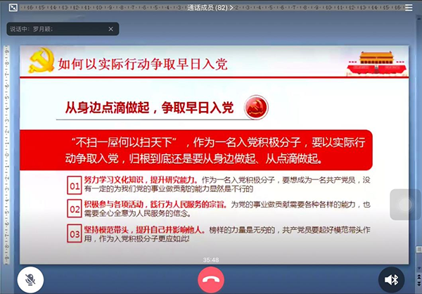我院党总支委员罗月颖、郑辉、黄春晓以“端正入党动机”、“深剖党的宗旨与政治制度”以及“讲述中国共产党人的使命与担当”为主题,从以身作则,率先垂范,以党员的标准规范严格要求自己,为人民服务的宗旨牢记在心等各个方面进行阐述,希望大家更好的发挥党员先锋模范作用。同时,老师们也带领大家回顾了中国共产党从无到有、从弱到强,带领人民建立新中国的大量历史事件和光辉历程。总结了党的百年奋斗历程中的重要启示,使全体发展对象对党和国家的历史有了更深刻的理解,更清晰感受到百年党史丰富的经验启示和精神力量。
