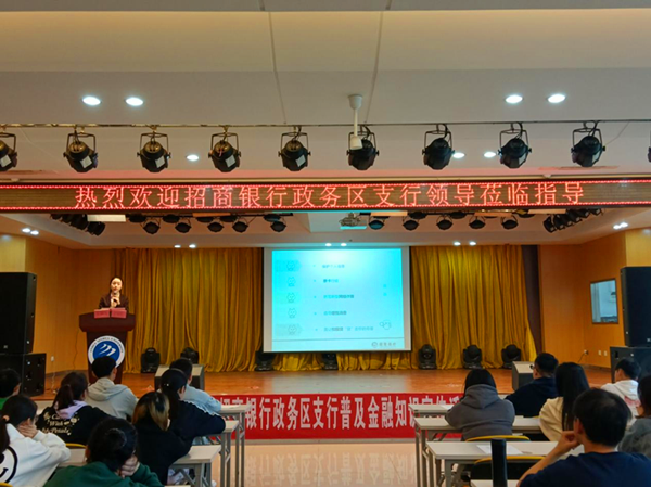 本网讯(通讯员:邓洁)为引导大学生树立正确的消费观念,增强金融防范意识,提升金融素养,营造良好的金融网络环境,4月21日下午招商银行合肥政务区支行主讲专家张玮钰在小礼堂为学生开展了“普及金融知识、安全有招”的专题讲座,财会与金融学院副院长张璐及2018级经济与金融、互联网金融专业全体学生参加了此次讲座。