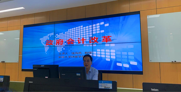 钱海燕教授通过对比政府会计与企业会计,理清两者之间的差异,并以生动的图表构架介绍我国政府会计改革的改革目标、体系框架和未来发展方向。他强调,政府会计很重要,要领略中国特色社会主义政府会计的魅力,希望师生们增强爱国主义情怀,把理论与实务、经验借鉴与改革创新相结合,提高专业技能服务国家、奉献社会。