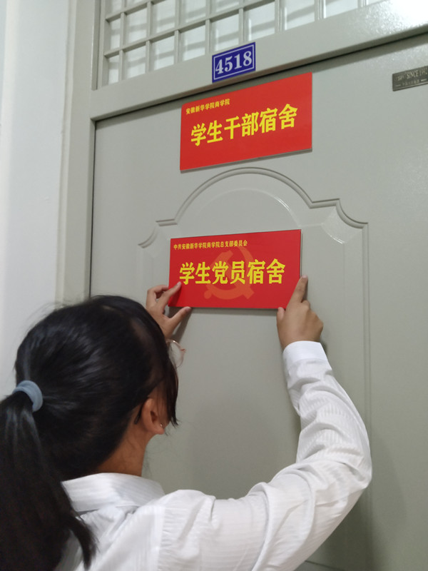 本网讯(通讯员:耿丽)为进一步加强学生党建工作,充分发挥大学生党员在日常学习生活中的模范带头作用,促进学生公寓宿舍文明建设,6月7日,商学院举行“亮身份、树旗帜、作表率”党员宿舍挂牌仪式。