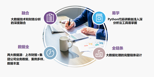 整个课程以财务人员大数据分析能力培养为教学贯穿主线,融合数据采集、数据清洗、智能分析、可视化呈现全流程大数据工具为一体;以企业竞争力分析与经营预判为业务场景,锻炼学生全局思考财务大数据应用流程,从商业问题确定——分析模型设计——数据采集清洗——数据挖掘建模——可视化呈现——解决方案报告流程,让学生在商业仿真业务场景中学习前沿信息技术工具、融汇财务专业理论知识应用,理解企业数字化经营管理体系,熟悉企业经营分析常用财务指标及数据,提前适应未来岗位环境及要求。