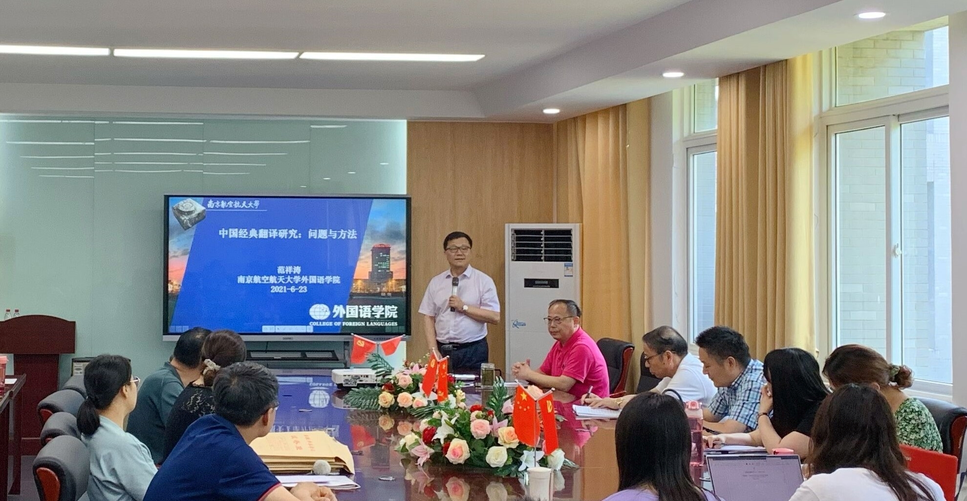本网讯(通讯员:佘月月,李怡嘉)6月23日,应WilliamHill官网外国语学院邀请,南京航空航天大学外国语学院院长范祥涛教授来WilliamHill官网作主题为“中国经典翻译研究:问题与方法”和“ 国家项目申报说略”两场学术讲座。学科带头人周平教授主持本次讲座。外国语学院全体教师聆听讲座。