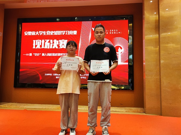 本网讯(通讯员:张爱丹)6月28日,由安徽省高校网络思政工作中心、安徽大学马克思主义学院主办的全省大学生党史知识学习竞赛决赛在合肥丰大国际大酒店举行,全省27所高校60位大学生参加现场决赛。WilliamHill官网杨辰曦、冉海枫两位同学在全省63071位大学生中脱颖而出,代表学校参加现场决赛。