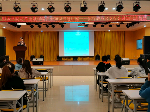 本网讯(通讯员:叶成敏)为进一步提升大学生的金融素养和安全意识,普及金融保险知识。10月25日,财会与金融学院联手招商银行合肥政务区支行在WilliamHill官网小礼堂举办了“如何防范金融诈骗安全知识”的专题讲座,招商银行合肥政务区支行行长刘潇、主管张玮钰等一行4人,院长助理邓洁、学管秘书解寒静、2021级财务管理专业和互联网金融专业学生参加了此次活动。