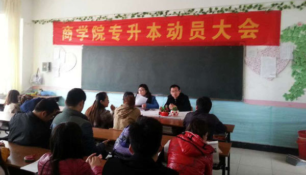 本网讯(通讯员 杨兆亮)为了让同学们有更好的发展空间,实现自己的目标。3月20日下午,商学院举行2013届专升本动员大会。该院50余名报考专升本考试的同学参加了会议。