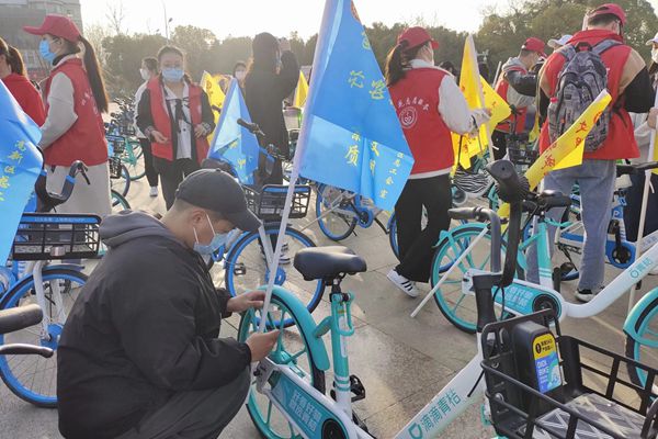 药学院志愿者参加高新区学雷锋志愿服务月启动仪式暨环保骑行宣传活动