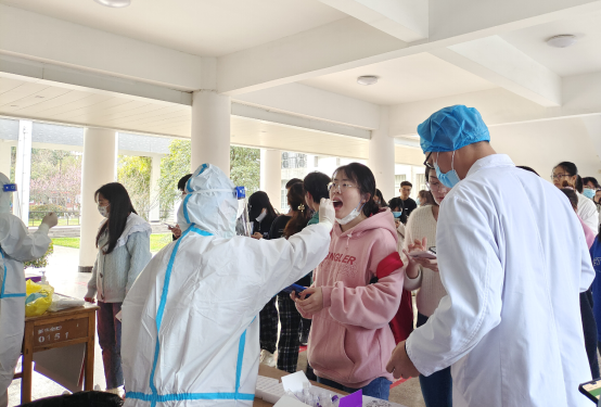 据了解,本次共有676名学生进行核酸检测,待检测结果出来后,社区服务站还将安排专人把检测报告送至学校,最大限度减少学生外出情况。本次应对教师资格证考试同学开展的核酸检测工作,积极响应疫情防控要求,盯紧疫情防疫风险点,为全校师生铸就一道安全防护墙。同时也充分实践了“我为师生办实事”的宗旨,文化与传媒学院将继续从学生实际需求出发,帮助学生解决日常生活、学习中的具体问题,做好各项服务工作。