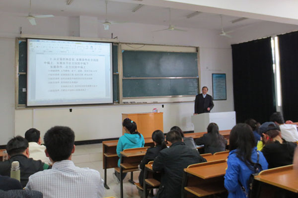 程必定分别从安徽近代经济史、安徽经济地理和安徽发展战略等进行了介绍,较为全面地展现了我省省情与发展战略,结构清晰,内容详实。报告会上,程必定教授还与参会的师生广泛交流,程必定指出我们每一个安徽人都应为安徽的发展尽自己的一份力,努力去实现我们的“安徽梦”。