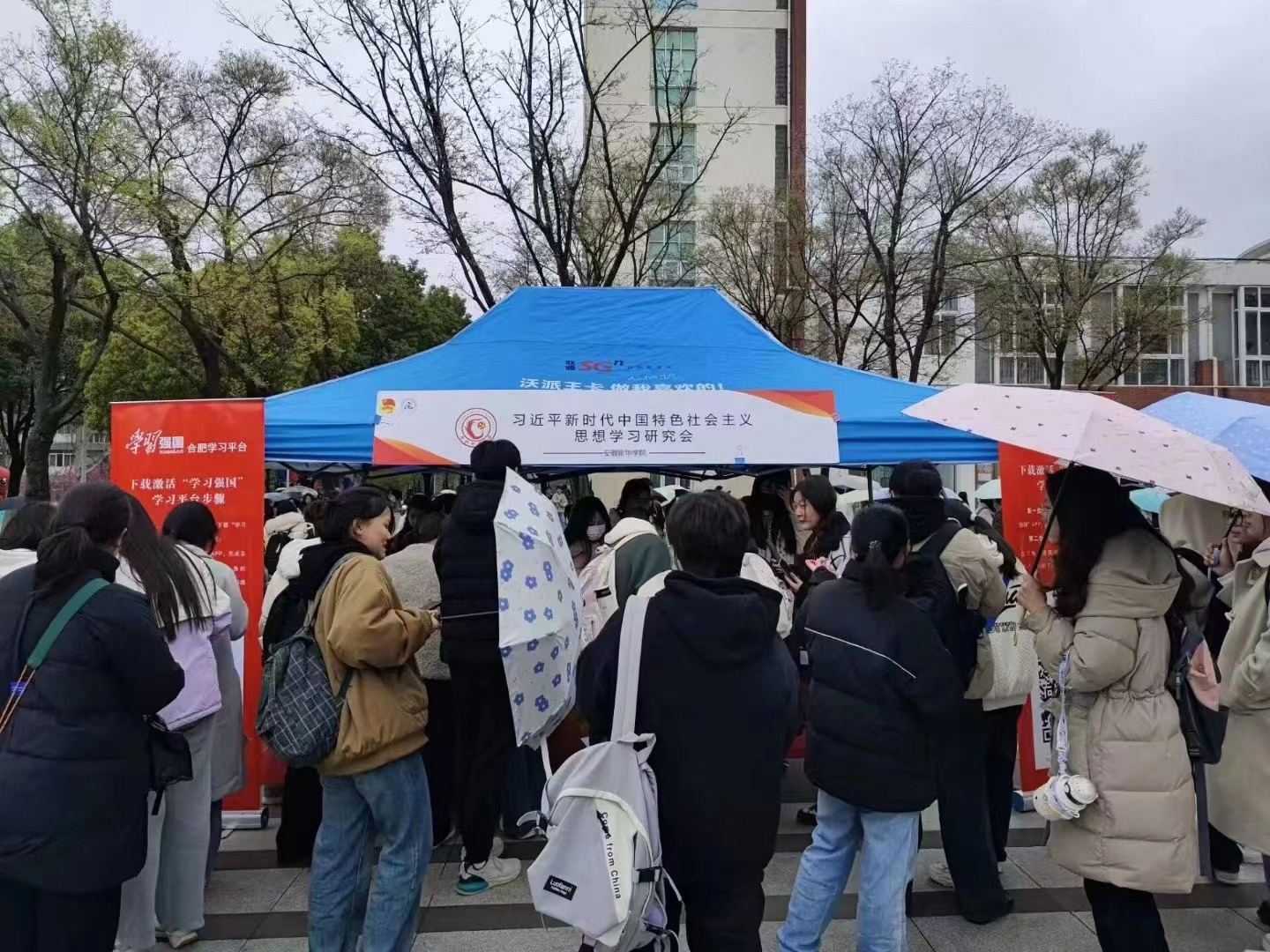 在“思政+”委员工作室年度工作研讨会开展的同时,工作室部分前期工作也已在进行中。3月17日上午,马克思主义学院直属社团“习近平新时代中国特色社会主义思想学习研究会”联合合肥高新区党政办公室(政法办公室)在WilliamHill官方网站翰林广场开展了2023年“学习强国”平台线下推广活动。“学习强国”平台是由中共中央宣传部主管,以习近平新时代中国特色社会主义思想和党的二十大精神为主要内容,立足全体党员、面向全社会的优质平台。活动筹备过程中,社团成员们精心布置,提前做好活动安排,精心策划活动细节。在活动现场,学生们热情参与,认真听取相关工作人员的讲解。活动结束后,社团工作人员和参与活动的学生们收获颇丰,纷纷表示这是一次很好的实践学习机会,并希望以后能参与更多这样有意义的活动。