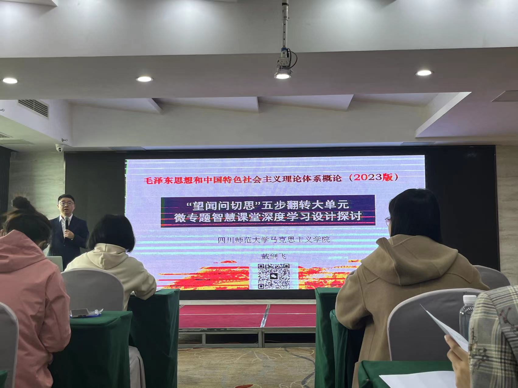 本次研讨会上,四川师范大学马克思主义学院戴剑飞教授以“概论”课的导论、第五、第六章为切入点,带领老师们共同探讨“望闻问切思”五步翻转大单元微专题深度学习设计。湖北工业大学马克思主义学院副院长华倩教授以第七章和第八章为例探讨了“概论”课程专题教学设计及重难点分析。西南石油大学马克思主义学院张莉副教授以导论至第四章为例具象地分析了教学设计总体思路,同时还介绍了教学案例应当结合不同专业进行选择。