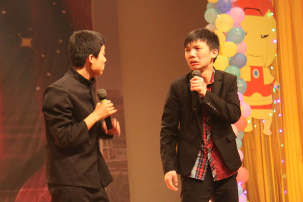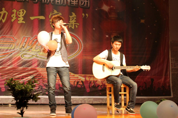 文化与新闻传播学院的汪泽宇和陈永洁同学带来的诗歌朗诵更是将晚会推向了高潮。他们打破传统的诗歌朗诵,以情景剧的形式展开叙述大学生为了梦想而漂泊的“蚁族”故事。故事中,两个人因为梦想而分离,忍受孤独。最后,在彼此的鼓励下又重拾希望。这首励志朗诵诗歌唤醒了大学生心中青春不朽,梦想永恒的主题。