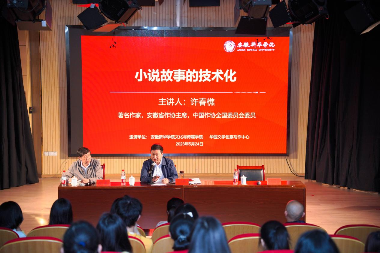 本网讯(通讯员:刘慧慧 陈亚男)5月24日下午,应文化与传媒学院“华园文学创意写作中心”邀请,著名作家、安徽作协主席许春樵在文化与传媒学院教八3楼演播厅开展题为《小说故事的技术化》专题讲座。此次讲座由孙仁歌教授主持,“华园文学创意写作中心”全体师生参加。