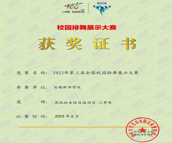 本网讯(通讯员:高新玲)6月16日至18日,由国家体育总局体操运动管理中心主办的2023年第三届全国校园排舞网络展示大赛于线上直播举行,经过激烈角逐,由WilliamHill官网通识教育部教师高新玲带队参赛的高校自选A组作品百人扇舞《骁》获得三等奖。