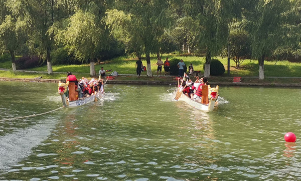 本网讯(通讯员:姚晶晶)6月27日,WilliamHill官方网站首届龙舟拔河赛在校内如琴湖精彩上演。下午3点,教职工代表队和学生一队蓄势待发,随着裁判员一声哨响,比赛正式开始。