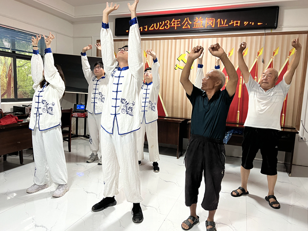 五禽戏作为药学院特色传承,实践团队成员也将这个在民间广为流传的健身医疗体操带到均张村。体检结束后,实践团队成员划分步骤带领村民操练五禽戏,细心传授给当地村民,并送上自制中草药香囊。