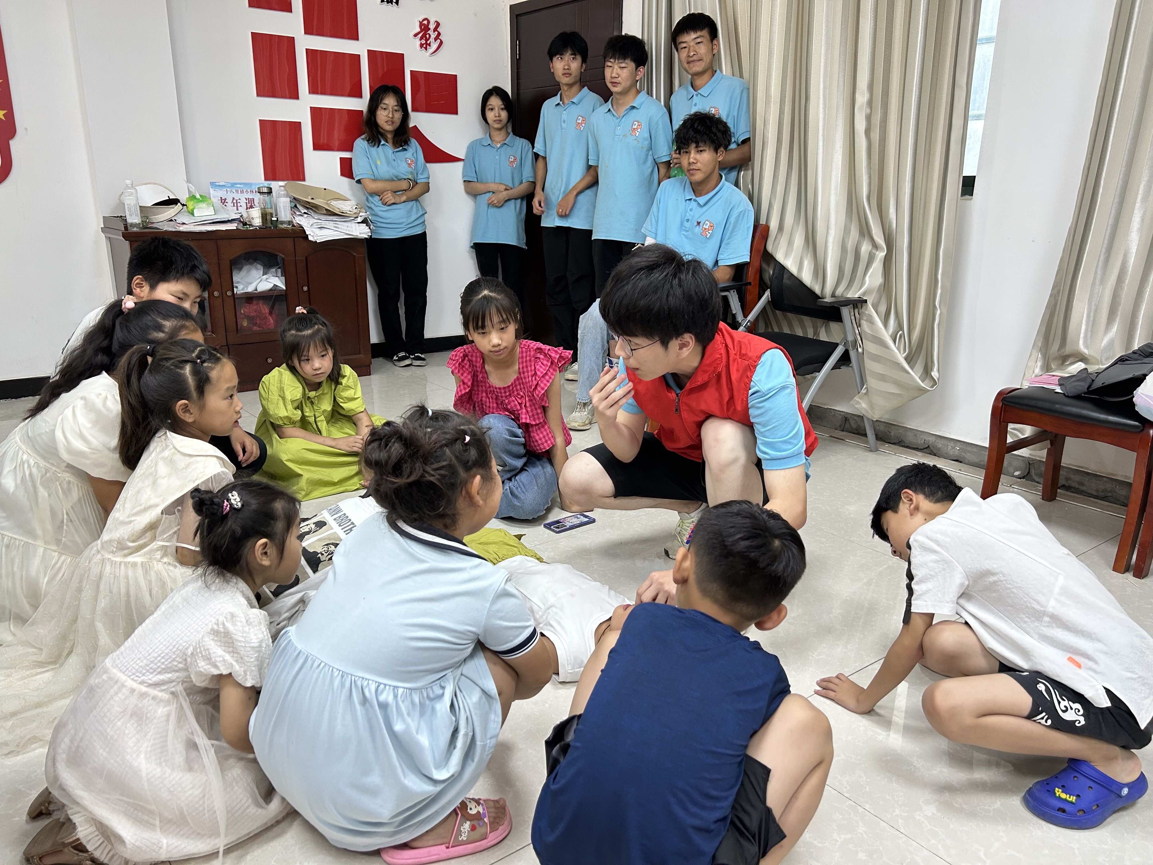 除了理论的宣讲,队员们还通过情景演示、知识问答、防溺水歌谣等形式让孩子们更加深入的学习防溺水安全知识,做到防溺水六不准,熟悉自救方法和施救措施,告诫孩子们遇到有人溺水时不要手拉手盲目施救,要做得到智慧救援,立即寻求成年人帮助。“你知道哪些水域是不可以下水玩的吗?”“万一溺水了,你要怎么自救呢?”,通过知识问答引导留守儿童回答,在互动中讲述溺水事故的特点等。在心肺复苏实操演练环节,凌云亮通过场景模拟,现场示范了溺水施救、人工呼吸、心肺复苏等动作要领及遇到危险时的自救技巧、措施,边示范、边讲解,力求做到防溺水教育入脑入心,预防溺水事故发生,撑起防溺水安全伞。
