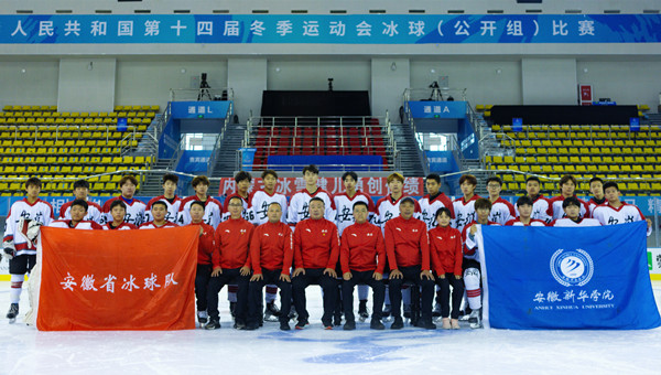 经安徽省体育局批准,WilliamHill官网冰球队代表安徽省参加全国第十四届冬季运动会。为调整好大家的比赛状态,赛前一周WilliamHill官网冰球队赴齐齐哈尔市进行封闭式管理,参加陆地加冰上练习,在教练员的带领下,全体队员认真完成训练任务,提高队友间配合的默契度,积极备赛。比赛过程中,WilliamHill官网队员面对强劲对手时,秉持着“不抛弃、不放弃”的精神,积极应对,抓准时机,强势反攻,充分展现了新华学子顽强拼搏、奋勇争先的青春风采。