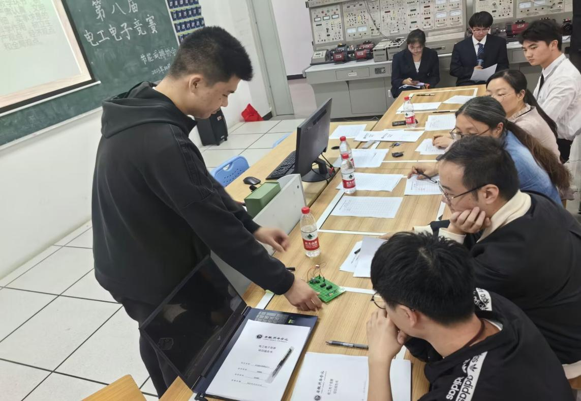 本次竞赛分为电工、电子、节能减排创意、节能减排社会实践、节能减排作品五种竞赛类别。电工、电子为电类基础性比赛,主要考察学生强电以及弱电方面的知识和技能掌握,以及常用仪表的使用,考察学生在模数电方面的电路设计能力及调试能力。参赛队伍在竞赛前一周进行选题、方案制定、成本计算、焊接调试。在比赛现场进行PPT展示,以及功能讲解实物演示,并由评委老师对学生基本知识以及现场答辩能力进行测评,最后综合评分。节能减排创意、节能减排社会实践、节能减排作品主要培养学生节能减排意识,创造节能减排氛围,并通过节能减排科技创新等作品制作,进一步提升学生发现问题、解决问题的能力。