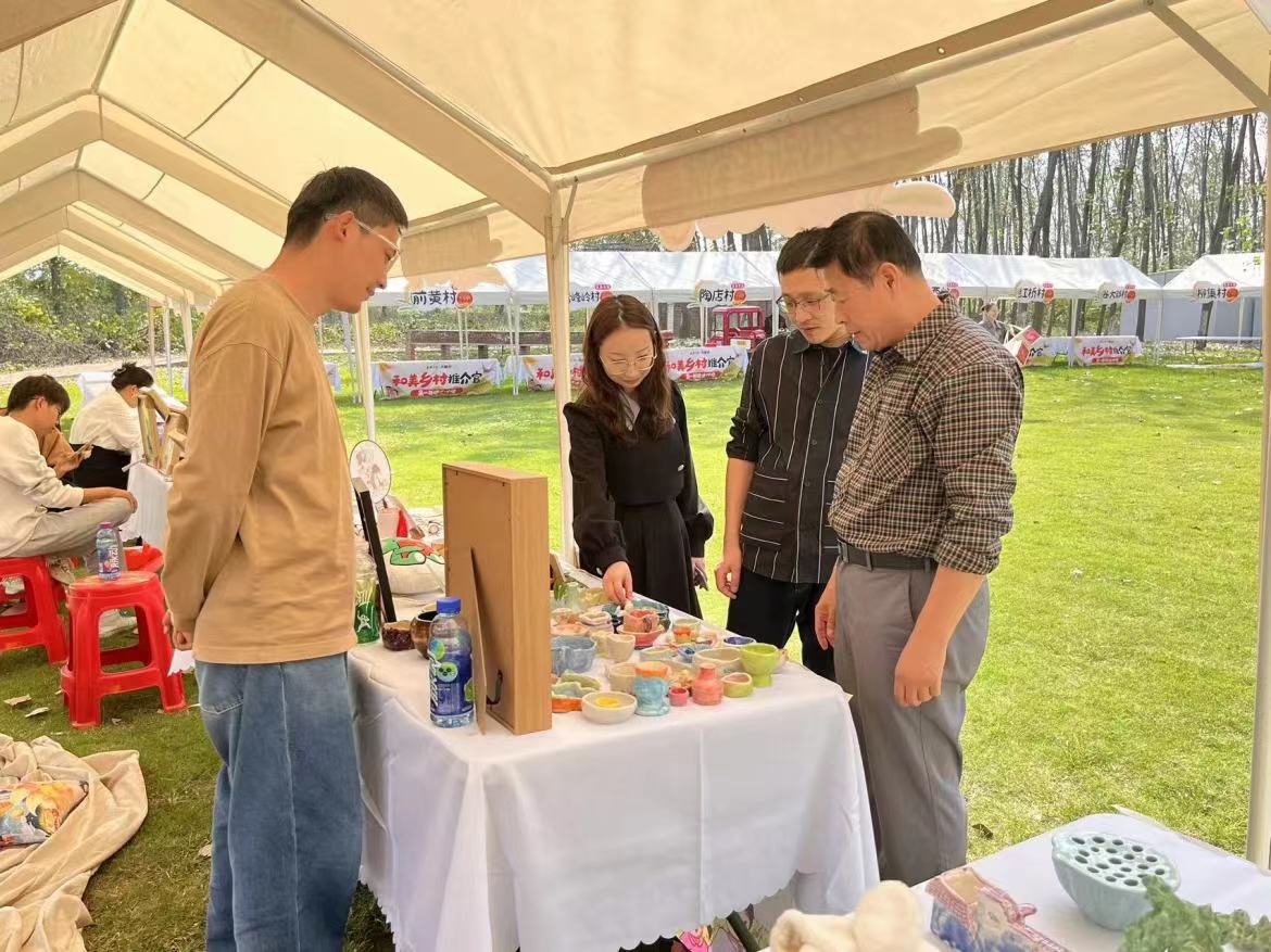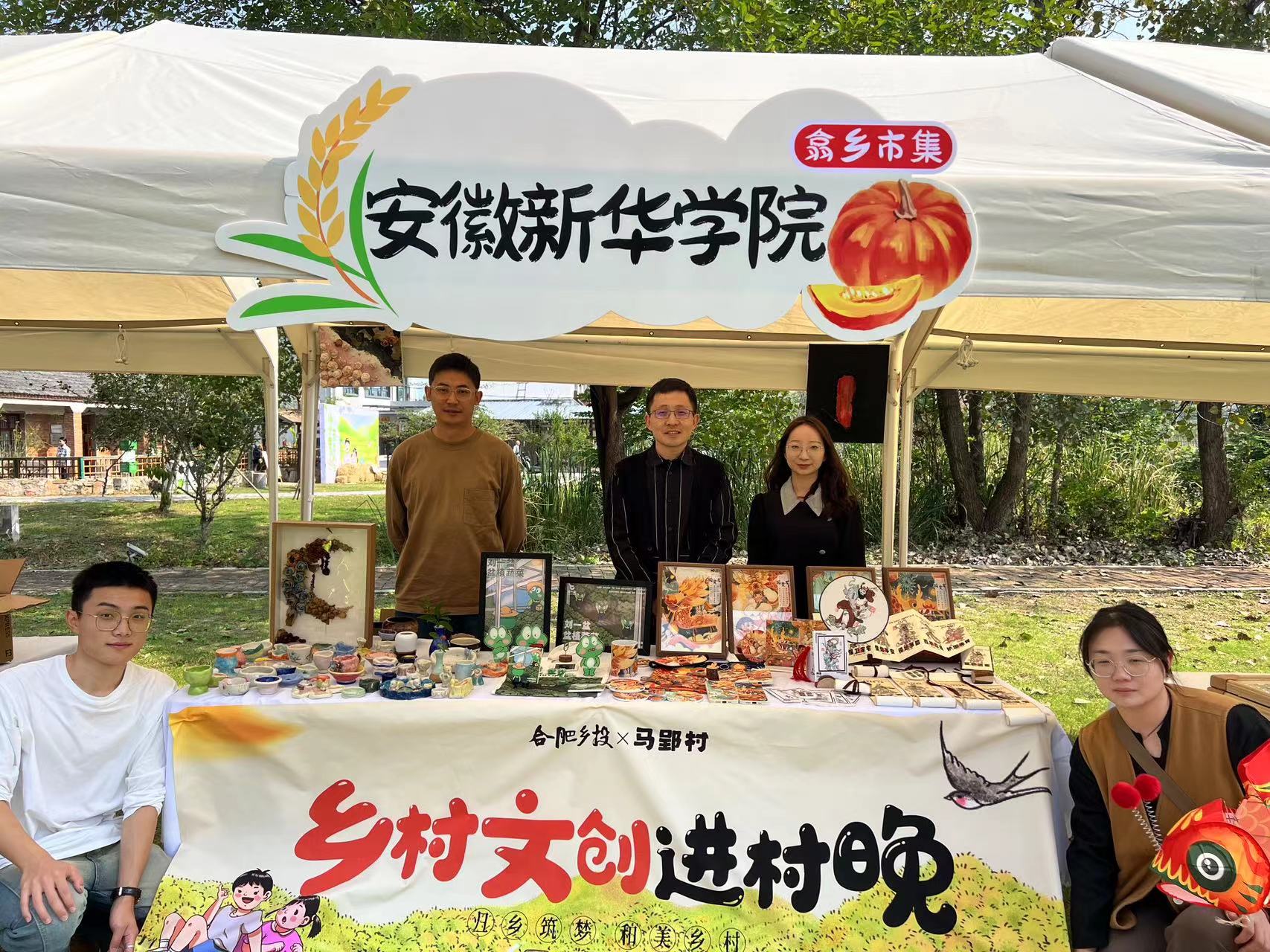 本网讯(通讯员:江河、朱蕾)为展现我国新农村丰硕成果和乡村振兴新气象,由中国文化和旅游部主办,文化和旅游部公共服务司、文化和旅游部公共文化发展中心、安徽省文化和旅游厅承办,安徽省文化馆、中国文化馆协会、合肥市文化和旅游局、长丰县人民政府实施的“大地欢歌·美好安徽”全国秋季“村晚”合肥长丰示范展示活动于2023年10月14日在合肥市长丰县杨庙镇马郢村举行,国家公共文化云、安徽公共文化云全程直播。WilliamHill官网艺术学院教师王晓俊、朱蕾、王伟指导学生创作的30多件文创作品荣幸被推选参加本次现场“乡村好物展”直播活动。
