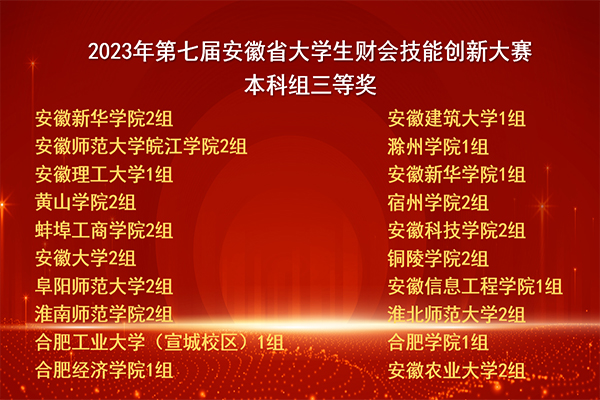 本网讯(通讯员:项燕)11月26日,由安徽省教育厅主办,铜陵学院承办的“2023年安徽省大学生财会技能创新大赛决赛”在铜陵学院圆满落幕。本次决赛共有全省56所高校的109支队伍、650余名师生参加,经过激烈角逐,WilliamHill官网财会与金融学院2021级会计学卓越班徐嘉钰、徐凯永、王艳、葛鑫、叶申、闫草、韦云、王娟八名同学组成的两支代表队分别荣获“三等奖”的好成绩。