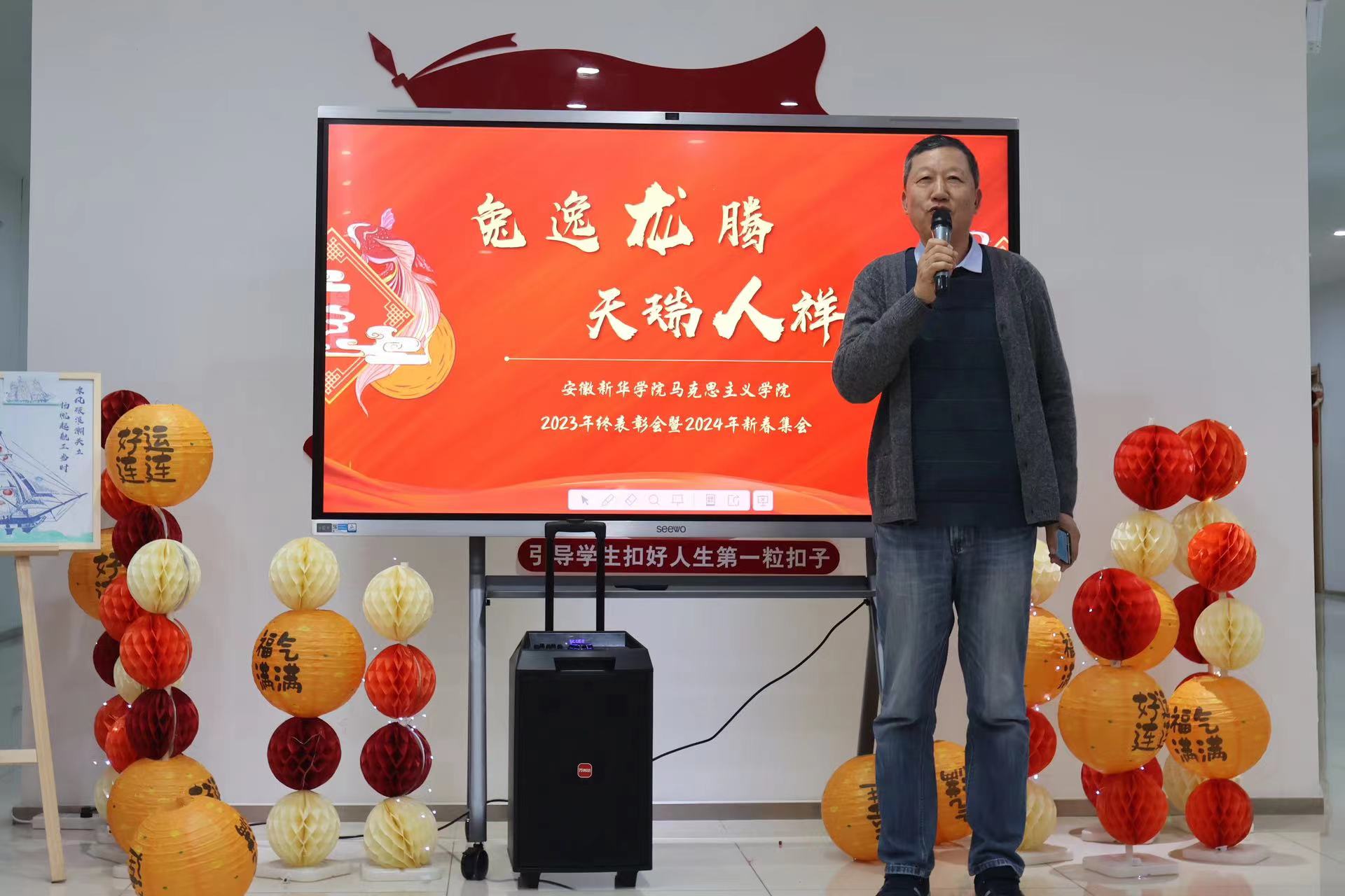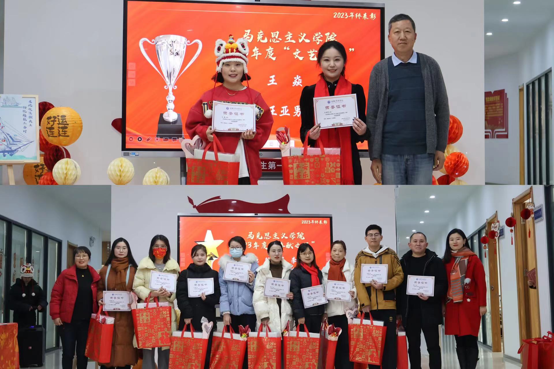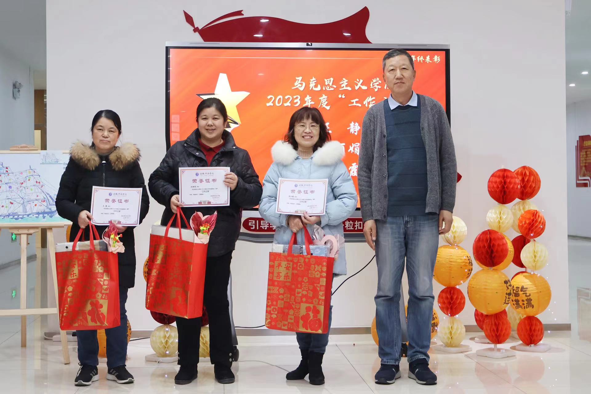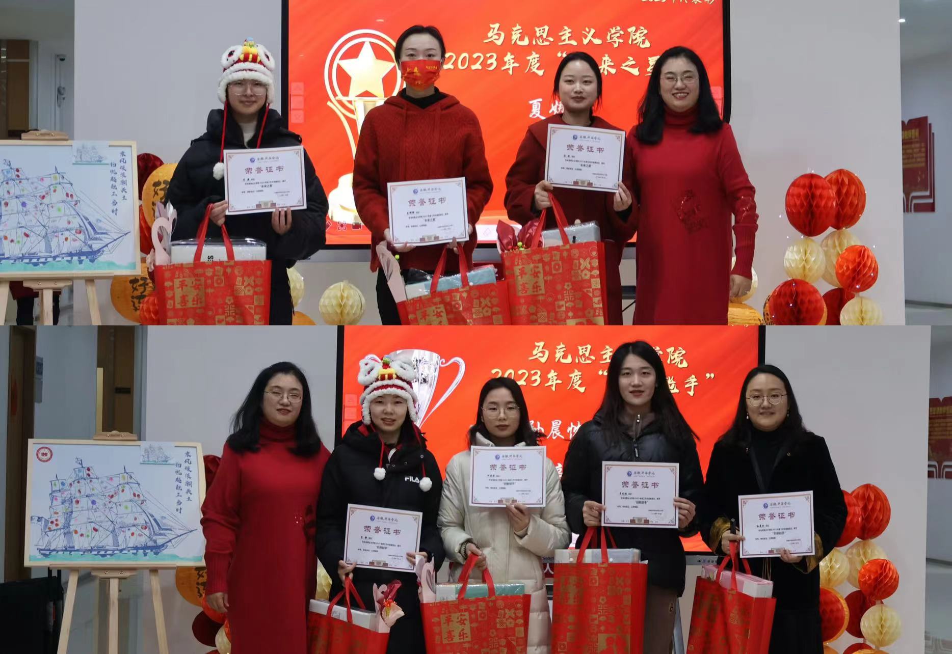 本网讯(通讯员:李颖)为了进一步推进思想政治教育工作的深入开展,提升教师队伍的思政育人能力,增强教师之间的凝聚力,马克思主义学院特别策划了“思政领航”教师系列培训活动。1月3日上午,马克思主义学院举办2023年度总结表彰会暨2024年新春集会。本次活动是对教师队伍建设的重视和投入,不仅对2023年度学院工作进行总结,对先进个人做出表彰,还以“心手相连 扬帆起航”为主题,通过各类手工制作活动,帮助教师们释放工作压力,促进团队成员间的沟通与交流。