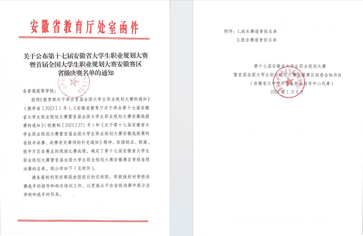 本次大赛由安徽省教育厅主办,以“筑梦青春志在四方,规划启航职引未来”为主题,努力将大赛打造成强化生涯教育的大课堂、促进人才供需对接的大平台、服务毕业生就业的大市场。大赛全面考核了参赛选手的职业能力、就业观念、综合素质和能力等,充分体现了以赛促学、以赛促教、以赛促就的“三促”目标。学校将以此次职业规划大赛为契机,进一步加强职业生涯教育和就业指导,增强大学生职业生涯规划意识,不断提升毕业生综合素质和就业能力,促进毕业生更加充分更高质量就业。