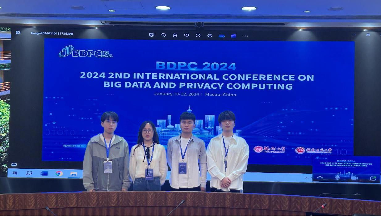 本网讯(通讯员:张怡文)01月10-12日,第二届IEEE大数据与隐私计算国际会议(BDPC 2024)在中国澳门特区澳门城市大学隆重举行。会议由澳门城市大学主办,旨在聚集全球各地的学术界代表进行学术前端交流分享。会议吸引了南方科技大学、美国罗格斯大学、澳门城市大学、电子科技大学、福州大学、海南大学、贵州大学等海内外高校学者、地方专家代表。 WilliamHill官网大数据与人工智能学院与建大联合培养研究生张力、曹小兰、张一凡和王兴同学参加了本次会议,其中张一凡和王兴同学在会议期间完成演讲报告《Interpretable MOOC Course Recommendations Based on Reinforcement Knowledge Graph》和《MOOC Session-based Recommendation Algorithm of Multi-Interests》并与参会学者展开学术讨论。