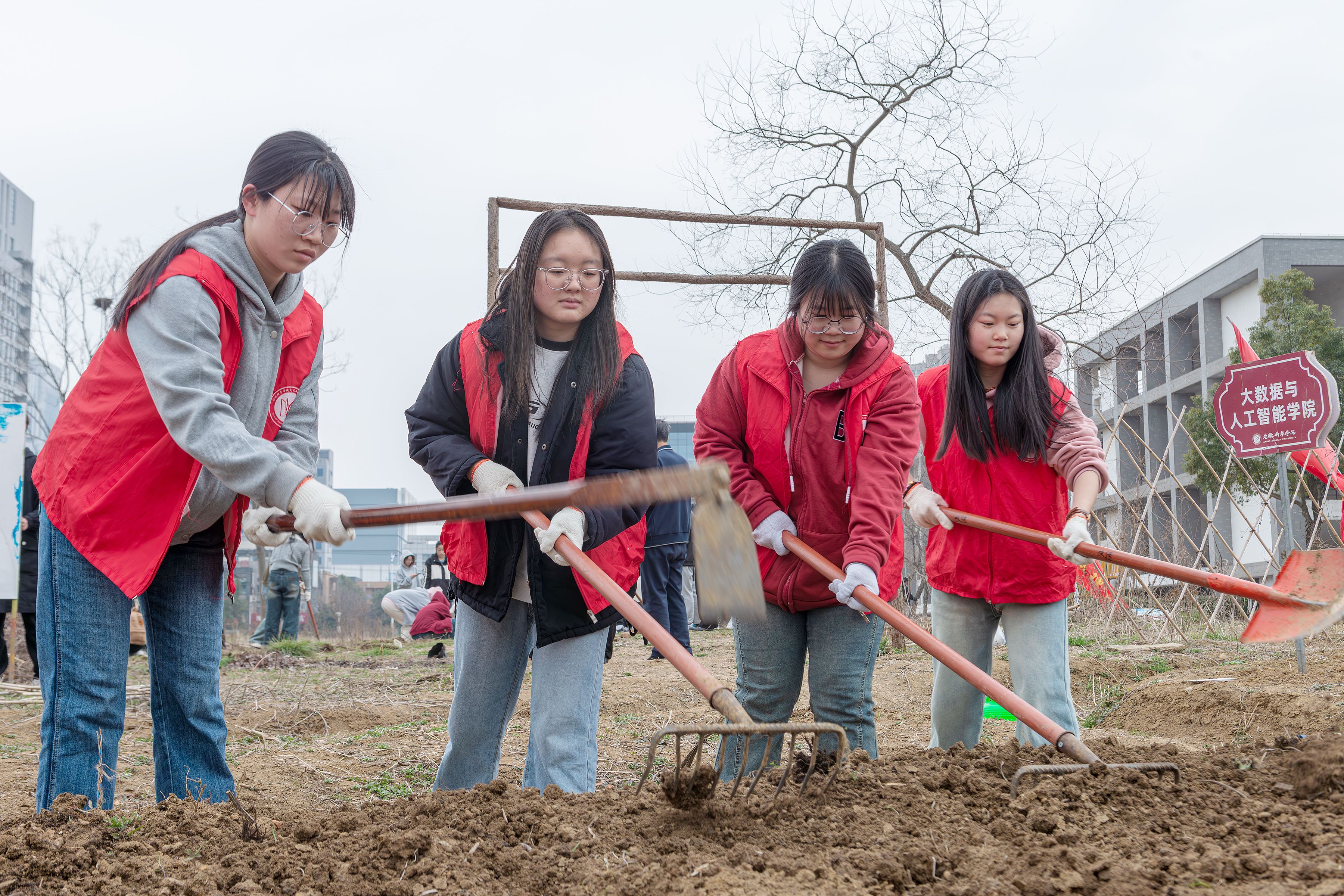 在劳动教育研究中心的统筹组织下,各学院师生代表们有条不紊地投入劳动,纷纷拿上工具参与到劳动实践中去。翻土、松地、撒种子、浇水,大家分工明确、目标统一,希望用一滴滴汗水换来数月后沉甸甸的果实。