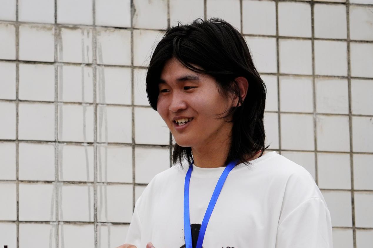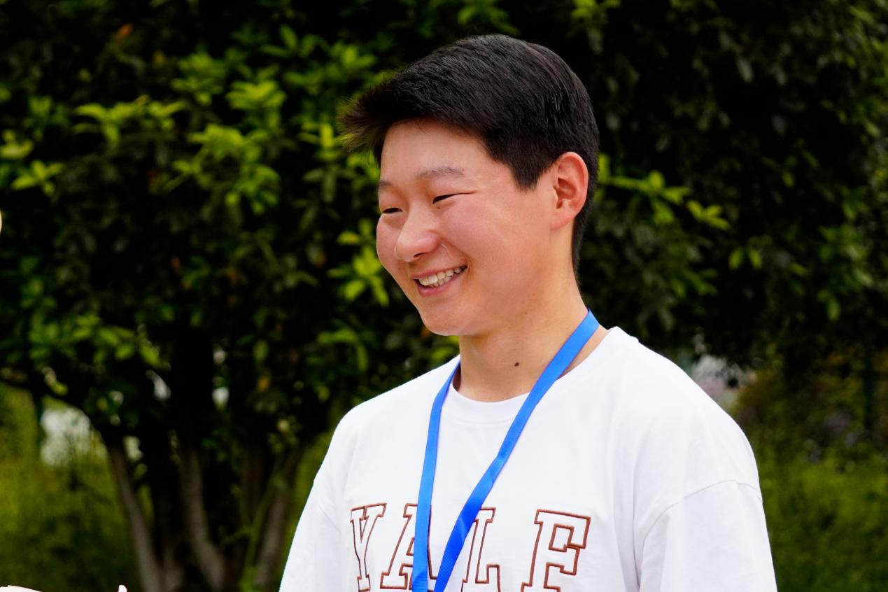 “一托、一举、一掷”,尝试铅球项目的高汉说:“我来到中国半年了,中国的同学们都很厉害,这次参加的铅球是我之前没接触过的,我觉得我有力量想试一试!”