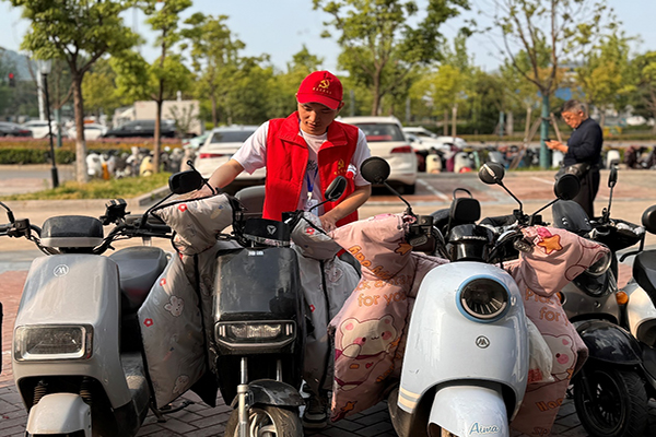 随后,志愿者们来到非机动车辆停放区,对社区乱停乱放电动车和自行车进行整理,同时对电动车规范充电进行安全引导,避免出现火灾安全隐患,经过一个多小时的努力,社区环境焕然一新。
