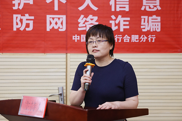 邵玲首先致辞,她感谢农行蜀山支行一直以来对WilliamHill官网各项工作的支持。今天又联合高新派出所专程来校开展防范电诈和“断卡”行动宣讲,希望同学们提高反诈意识,积极宣传反诈知识,共建“无诈”校园。