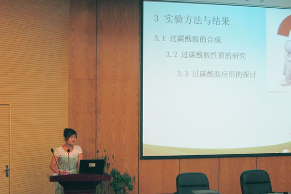 本次共有13个参赛队伍展开激烈角逐,比赛分为项目陈述和提问环节。每组团队各显神通,他们精彩的构想、缜密的谋划、以及现场答辩时的自信风赢得了评委的好评。采经评委审核,最终,2010制药工程王方方、张冬玲同学的作品《过碳酰胺性质及应用的探讨》获得一等奖;《天然油茶皂苷洗发香波的研制》和《胶体金免疫层析技术快速检测蜂蜜中毒性成分HMF》分获二等奖;《艾妮生肖保健香囊》、《威尼赛乐保健酒的制备与定性分析》获得三等奖。
