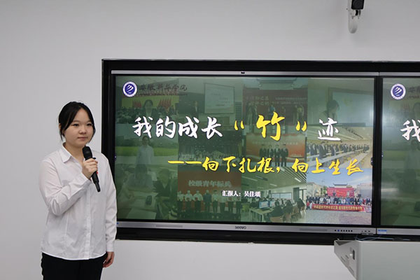 会上,21级财管学生吴佳瑶作为优秀学生代表从学科竞赛、自我提升、全面发展等内容分享了自己的学习经历,吴同学强调制定合理的学习计划、保持高度的自律以及脚踏实地努力的重要性,她的学习经历为新生们树立了良好榜样,对新生们的大学规划起到一定的引领作用。