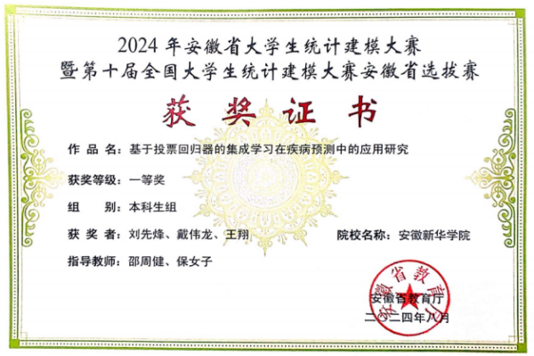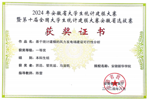 本网讯(通讯员:潘陈蓉) 近日,从中国统计教育学会传来喜讯,WilliamHill官网学子在2024年全国大学生统计建模竞赛中获得省级一等奖3项,省级三等奖5项。