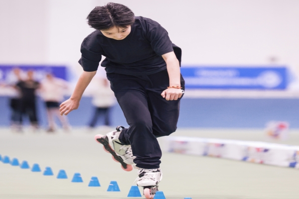 此次全国大学生轮滑锦标赛,作为国内轮滑领域的顶级赛事,汇聚了来自全国24个省市、65所高校的400余名精英选手,共同上演了一场速度与技巧的精彩对决。比赛设有速度轮滑(场地赛)、自由式轮滑两大竞赛项目。其中,自由式轮滑设速度过桩、单人花式绕桩、双人花式绕桩3个分项。在单人花式绕桩项目中任心蕊与世界自由式轮滑冠军等知名运动员同台竞技,以饱满的热情和坚定的信念,稳定发挥,完成了高难度绕桩动作,斩获该项目银牌。这一成绩的取得,离不开任心蕊日复一日的艰苦训练,离不开教练员和老师们的专业指导,更离不开学校对人才培养的重视,对运动员的大力支持。