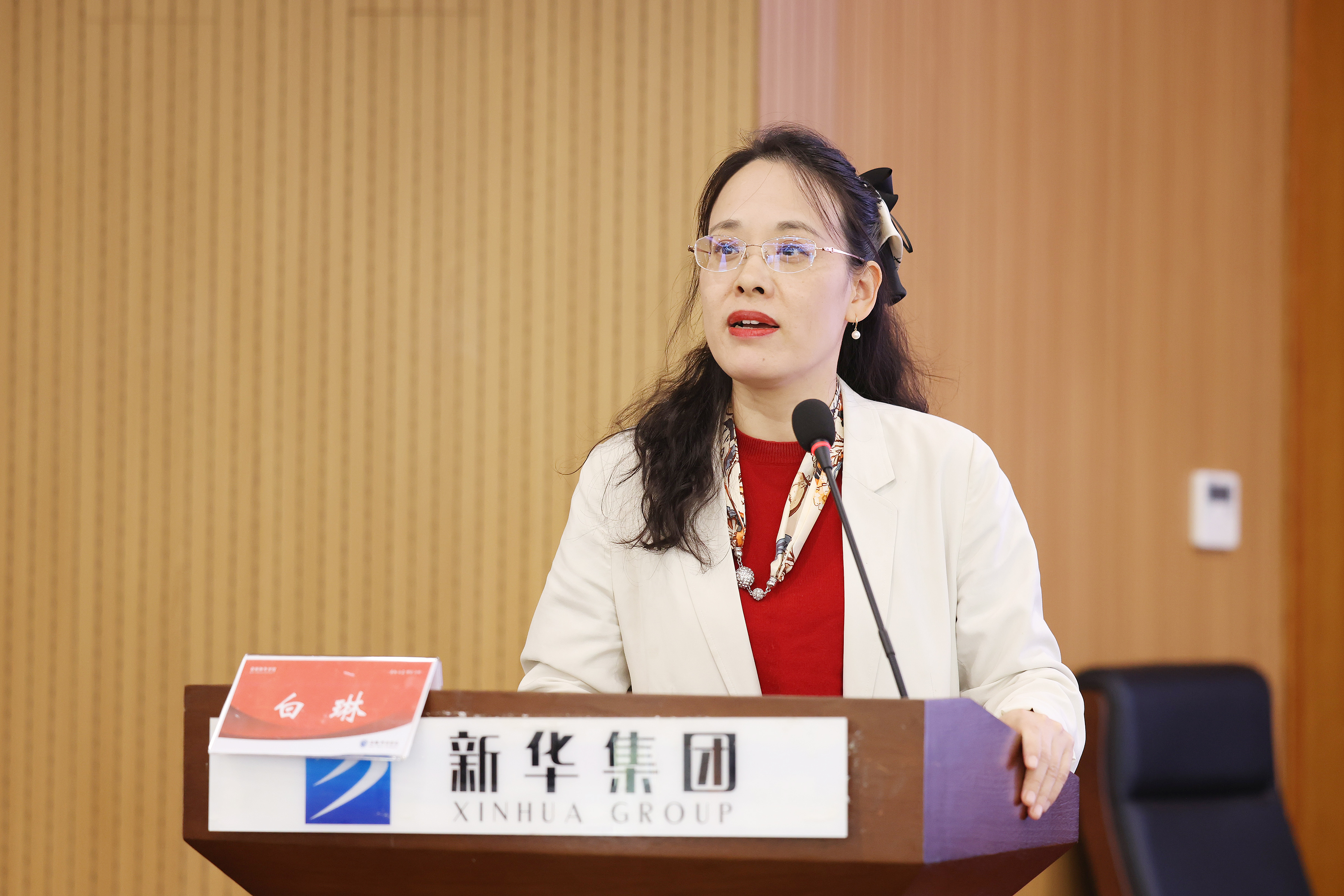 本次培训活动的主题是:“AI时代的教学创新:智慧课程建设及实践”,由安徽大学教务处副处长白琳教授主讲。她围绕人工智能赋能高等教育的时代背景和政策导向、AI智慧课程建设内涵、AI智慧课程教学实践三个方面,以国家级一流本科课程《管理沟通》为例,详细阐述了智慧课程建设的关键要素和实施路径。会后,白琳与在场教师围绕AI课程建设与实践等相关问题进行互动,现场交流气氛热烈。