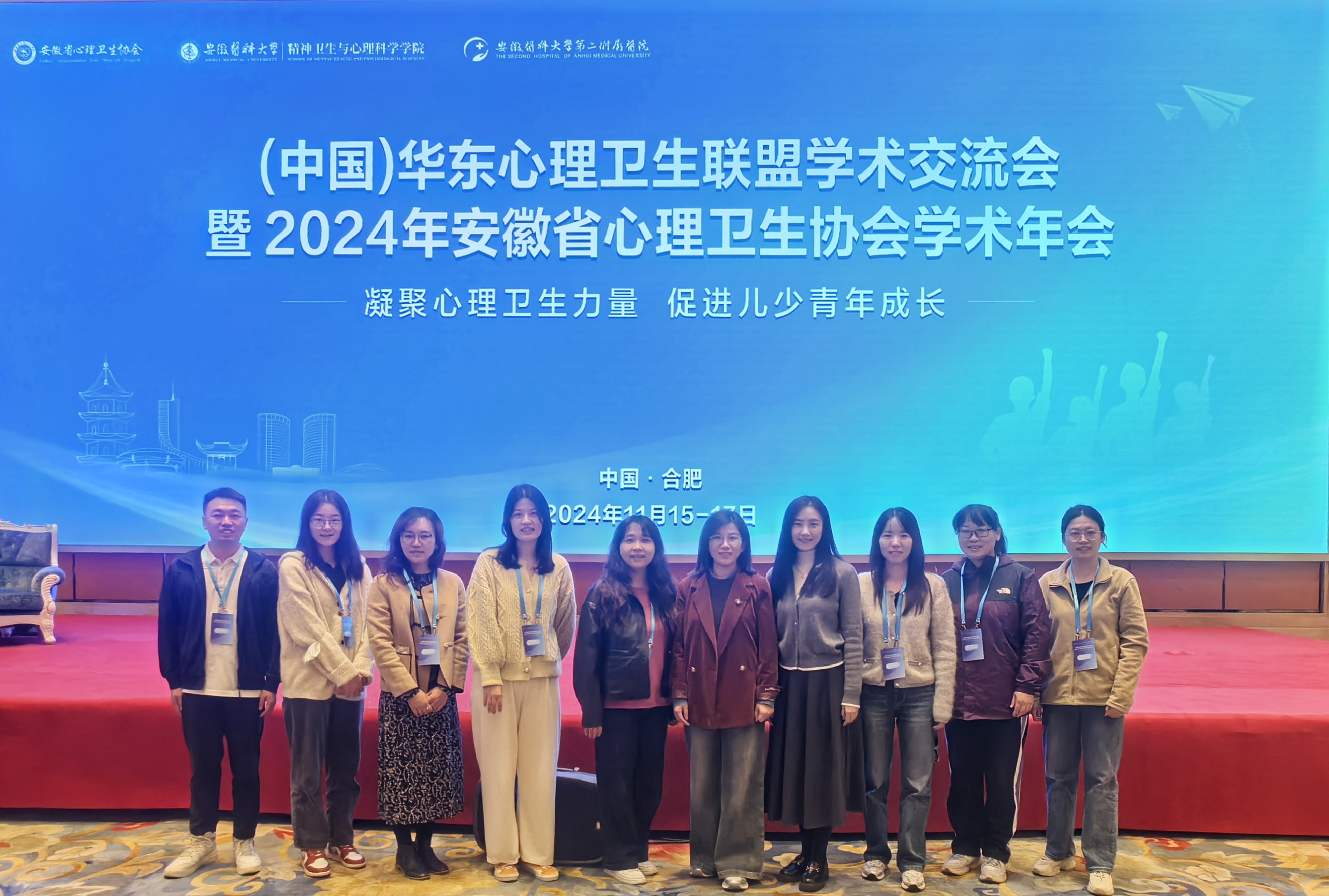 本网讯(通讯员:吴玲)11月15日-17日,(中国)华东心理卫生联盟学术交流会暨2024年安徽省心理卫生协会学术年会在安徽省合肥市召开。学生处处长芮萍带领学校心理健康教育中心及部分二级学院心理工作学工代表参与此次会议。