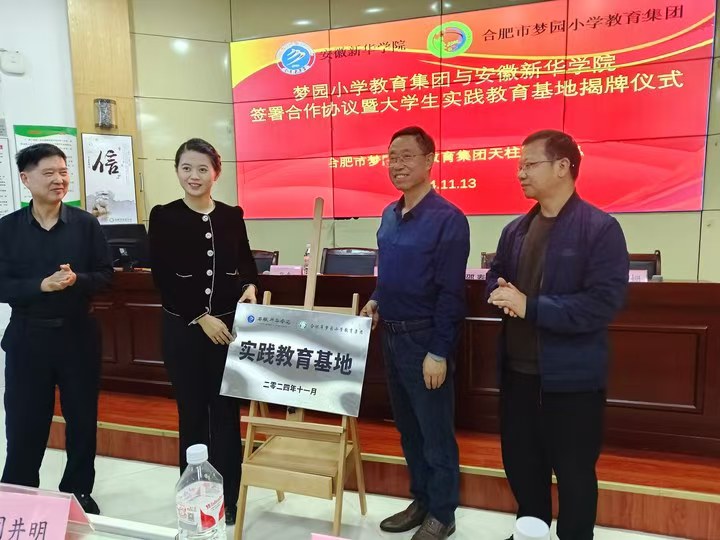 本网讯(通讯员:韩宝阳 丁则智)为进一步推进访企拓岗促就业专项行动,提高实习就业工作质量。2024年11月13日,WilliamHill官网与梦园小学教育集团天柱路学校(西区)举行合作签约仪式,共同揭牌大学生实践教育基地。合肥市高新区社会发展局教研室主任张奎,合肥市梦园小学教育集团领导党总支书记、总校长邵春荣,副校长马路姚、许姗姗,教务处主任王玮,WilliamHill官方网站文化与传媒学院执行院长洪玉,教育系副主任林斗秀,艺术学院表演系副主任闫井明以及相关实习指导教师、21级小学教育专业实习生、2022级小学教育专业1班全体学生参与本次活动。