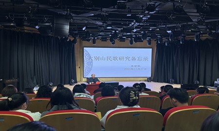 李世军作了题为《大别山民歌研究备忘录》的主题报告,他从近代、当代中国民歌研究回顾入手,系统阐述了大别山民歌、皖西大别山民歌、皖西南大别山民歌等概念的提出过程;他深入分析了大别山民歌的研究现状和创作特征,并对皖西大别山民歌的多元文化功能进行了全面论述,为师生展现了一幅完整的大别山民歌研究图景。