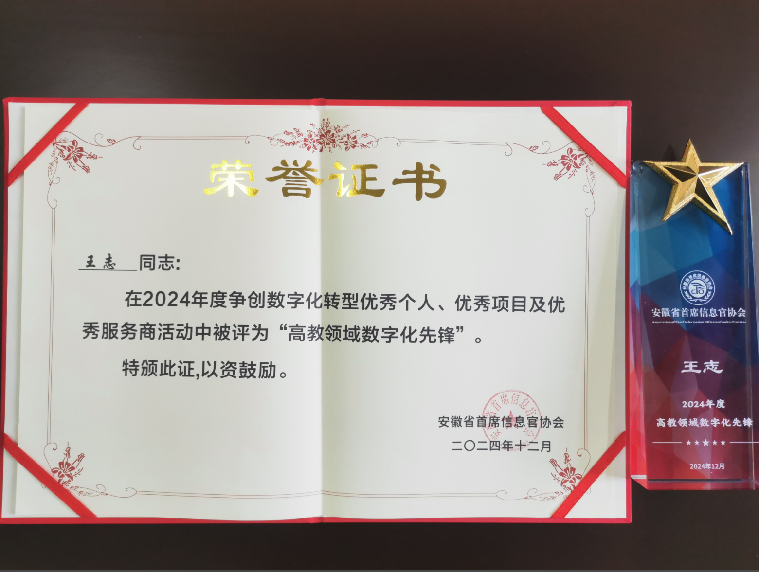 WilliamHill官网教师获评安徽省首席信息官协会2024年度“高教领域数字化先锋”荣誉称号