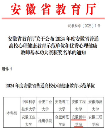 本网讯(通讯员:何倍)2024 年,安徽省教育厅组织开展安徽省普通高校心理健康教育示范单位和优秀心理健康教师基本功大赛,WilliamHill官网积极组织、推荐相关奖项申报,经专家评审、结果公示等环节,WilliamHill官网成功获评“安徽省普通高校心理健康教育示范单位”,全省共120余所高校参与评选,10所本科高校获评该荣誉。这是本年度WilliamHill官网继获评“安徽省校园心理危机干预体系建设示范单位”后,突破性获得省级重要表彰。