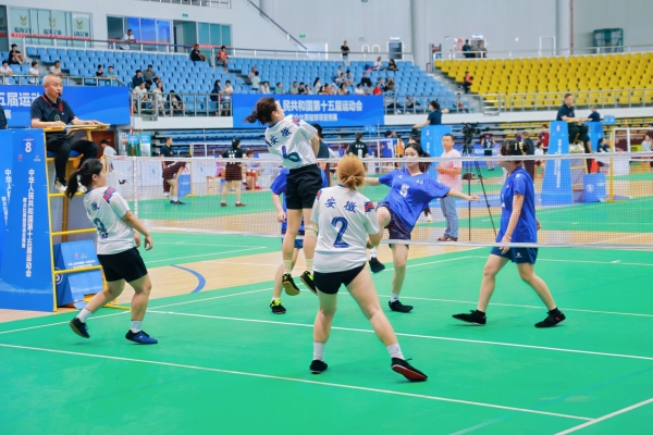 预赛中,安徽省毽球代表队堪称赛场上的“黑马”,大放异彩。面对山西队、江西队、湖南队、黑龙江队、江苏队等对手,队员们战术执行坚决,敢打敢拼、毫不畏惧,凭借出色的发挥,以全程不败的惊艳表现,勇夺预赛冠军,成功锁定总决赛入场券。